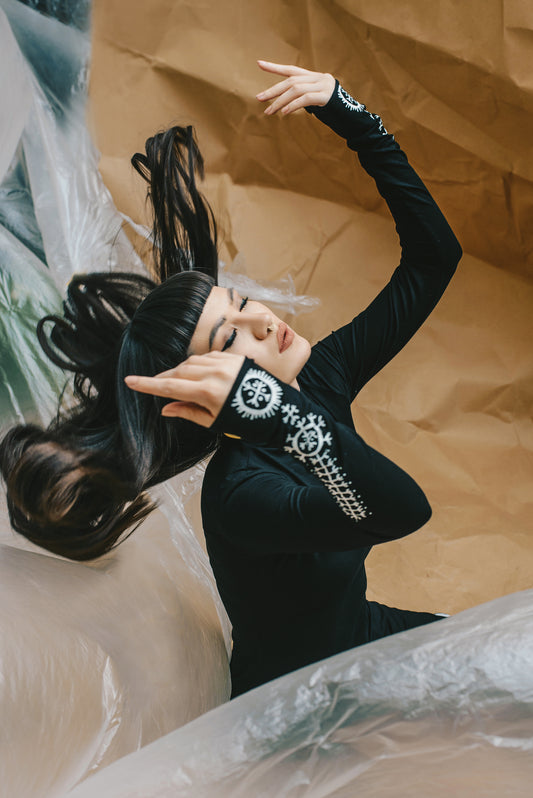 Shirt With Traditional Bosnian Tattoos by Ina Čano - black