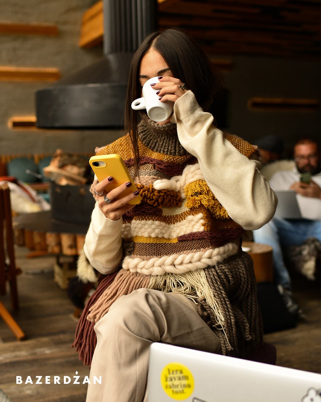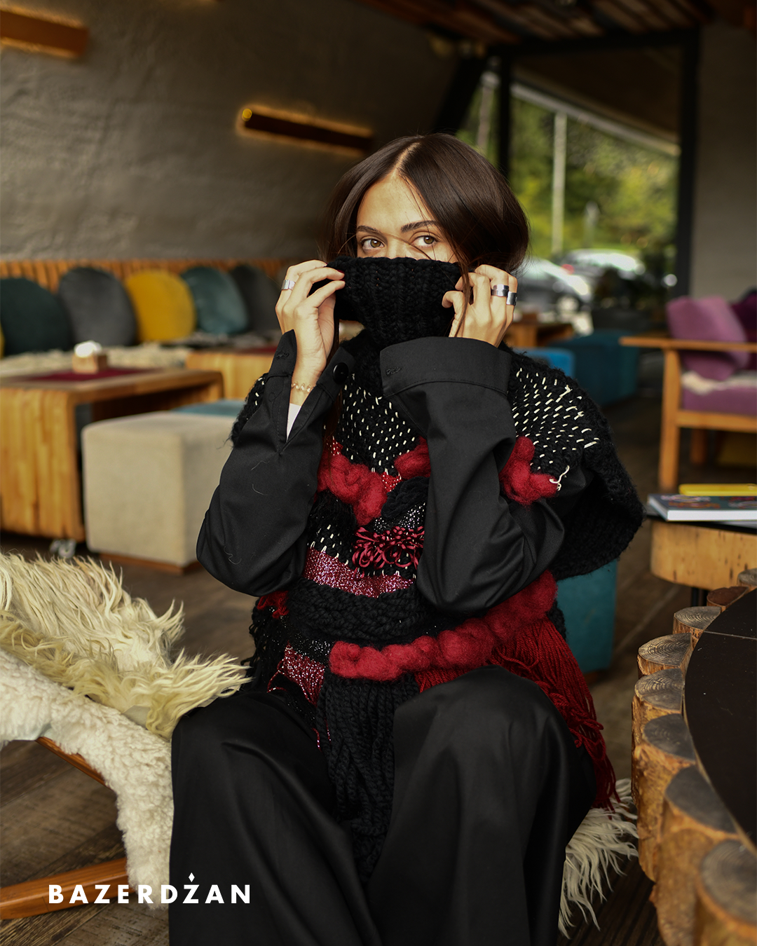 Wrap yourself in cozy charm with the Hanuschka multicolor knitted vest, it's a perfect blend of comfort and color.